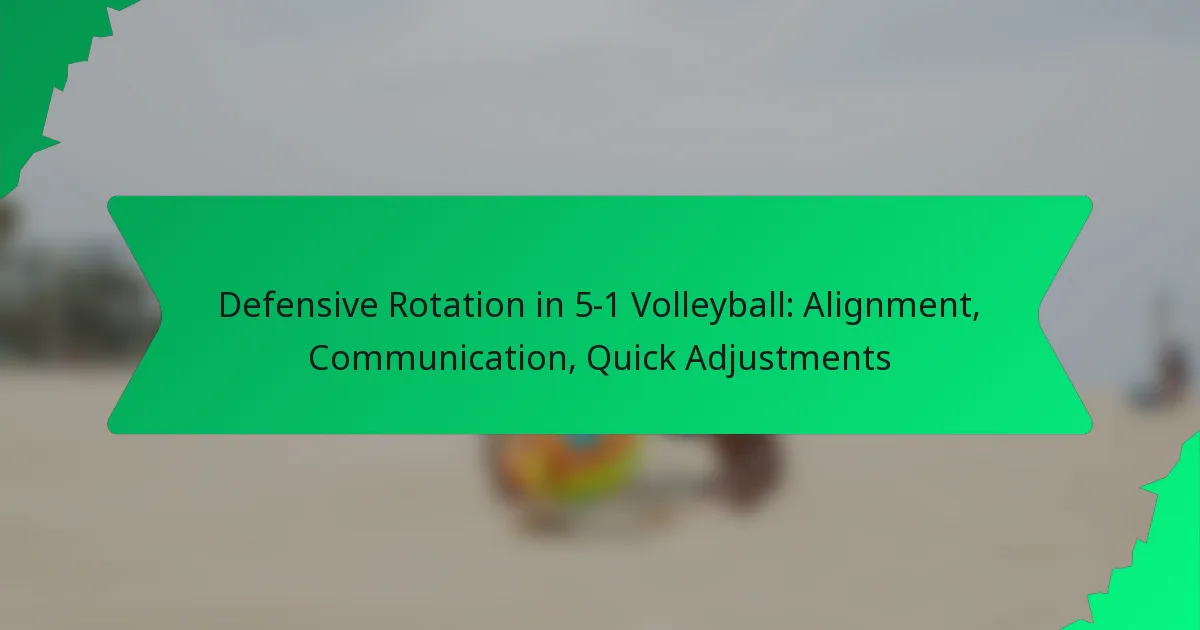 Defensive rotation in a 5-1 volleyball system is essential for optimising player positions to counteract the opposing team’s attacks. By ensuring strategic alignment and fostering effective communication, teams can enhance their defensive coverage and make quick adjustments during gameplay.